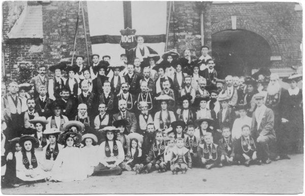 Als grosser Missionar des Guttempler Ordens in Europa gilt der Engländer Joseph Malins. Der Malergeselle Malins, Sohn eines Alkoholikers, hatte sich während eines Aufenthaltes in den USA für die brüderliche Hilfe der Guttempler zur Heilung von Trinkern begeistert, weshalb er nach seiner Heimkehr alles daran setzte, um die Guttempler Idee in Grossbritannien zu verbreiten. Schon 1873 zählte der Orden in England rund 20'000 Logen mit etwa 200'000 Mitgliedern, darunter 463 Bürgermeister, 892 Geistliche und über 100 Ärzte. Von England brachte der Kapitän Carl Reynolds den Guttempler-Orden in sein Vaterland Norwegen. Aus dem Norden drang das Gedankengut hierauf nach Deutschland vor, wo im Grenzgebiet zu Dänemark 1888 Deutschlands Grossloge Nr. I und 1889 Deutschlands Grossloge Nr. II entstanden. Bild: Eine Zusammenkunft von IOGT MItgliedern in England. Foto aus dem Market Lavington Museum.