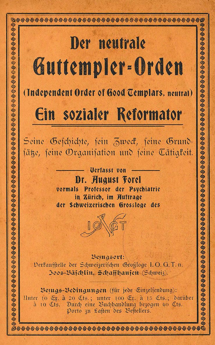 Prof. Auguste Forel gründete die erste Loge der Schweizer Guttempler 1892 in Zürich