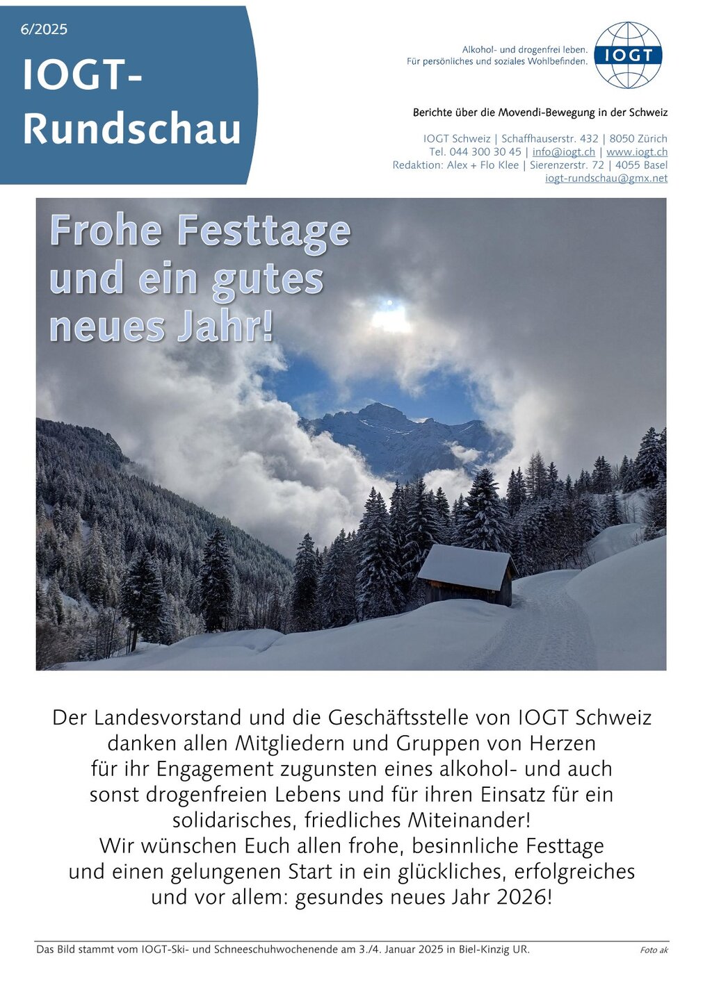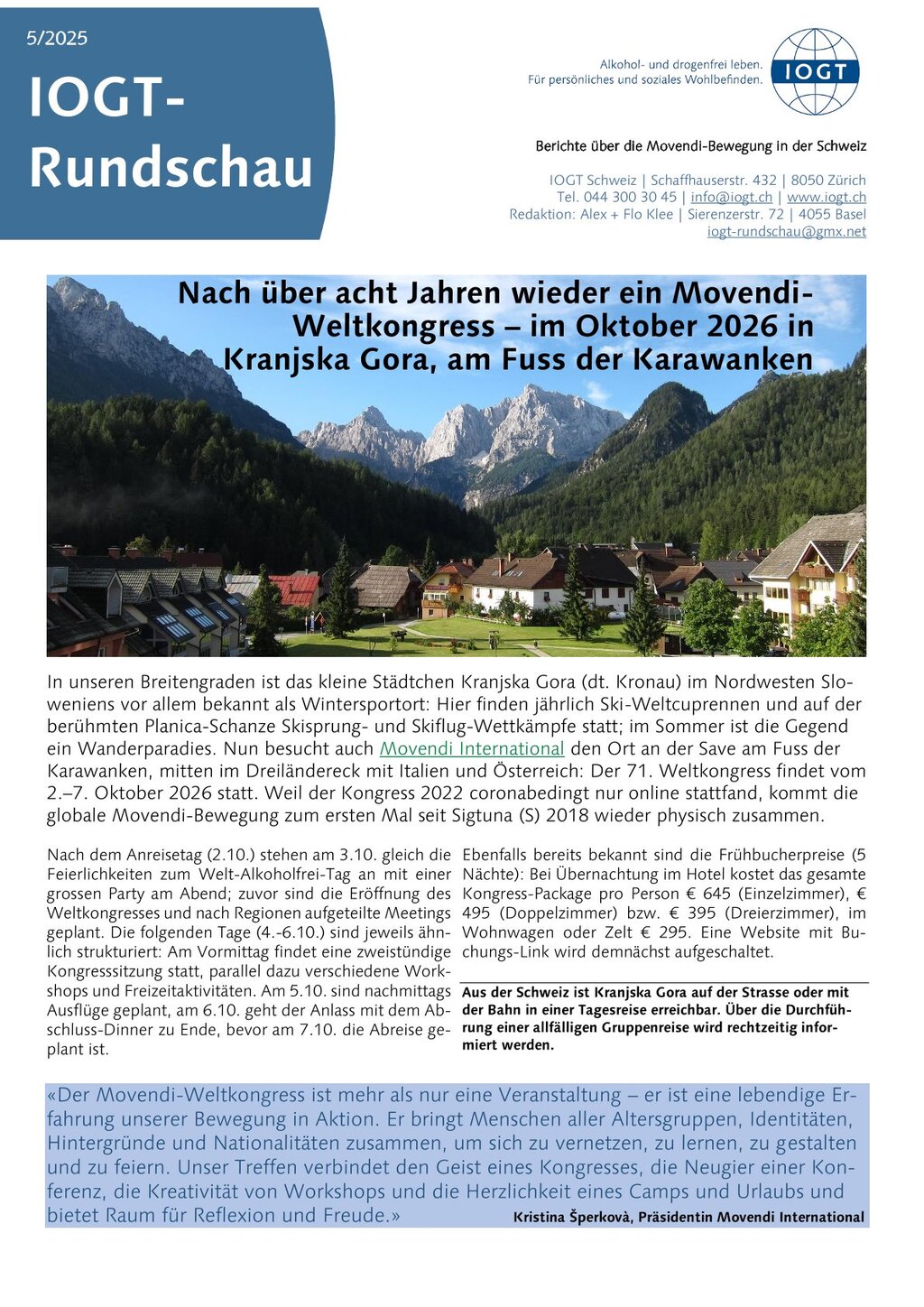 Die Rundschau hält Aktivitäten, Erlebnisse und Ereignisse rund um IOGT Schweiz, Movendi International und befreundeten Organisationen fest.