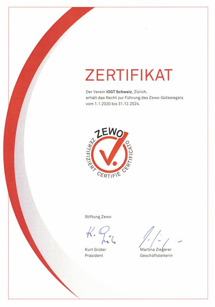 IOGT Schweiz ist eine ZEWO-zertifizierte Non-Profit-Organisation und finanziert sich aus projektbezogenen Zuwendungen sowie aus Spendengeldern.